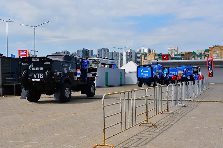 Татарстан – дом легендарного «КАМАЗ-мастер» – встречает прибывающие на ралли команды изнуряющей жарой, от которой механики и пилоты укрываются в шатрах на парковке футбольной арены «Рубина». Отсюда экипажи отправляются на предстартовые тесты под городом и официальные мероприятия в самой Казани. К слову, выбирать стадионы в качестве базы – старая раллийная традиция еще со времен африканских маршрутов «Дакара».