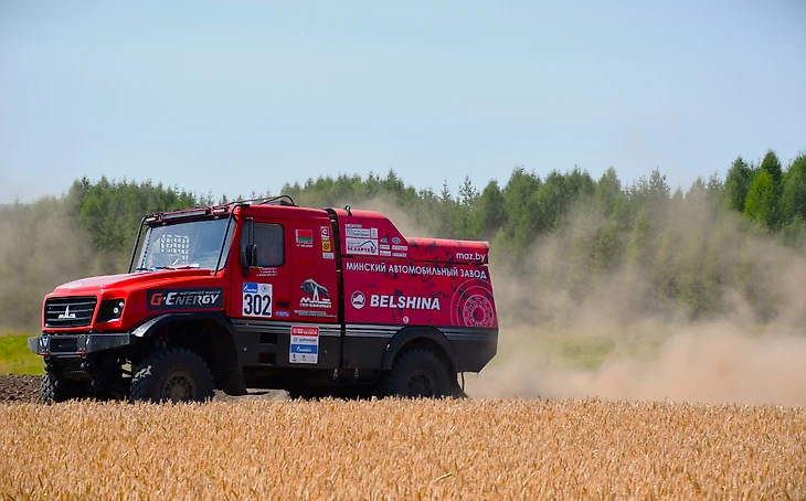 «Сложный маршрут в навигационной части, – делится со мной впечатлениями Сергей Вязович. – Штурманам приходилось очень несладко. Наш экипаж тоже допускал мелкие ошибки по навигации, но Алексей Вишневский и Виталий Мурылев (пилоты двух других экипажей «МАЗ-СПОРТавто») потеряли еще больше на этих моментах. Дорога очень нагруженная для шин из-за максимальных скоростей, твердого грунта, экстремальных 90-градусных поворотов и, как следствие, поздних торможений. Мы все время скользим. Поворот боком, скольжение – и так каждые полтора километра. Других трудностей у нас не возникало. Где-то капотник, конечно, имеет преимущество. Не только на извилистой трассе, но и на бездорожье. На ухабах после прыжков нас меньше трясет, потому что сидим в центре автомобиля».