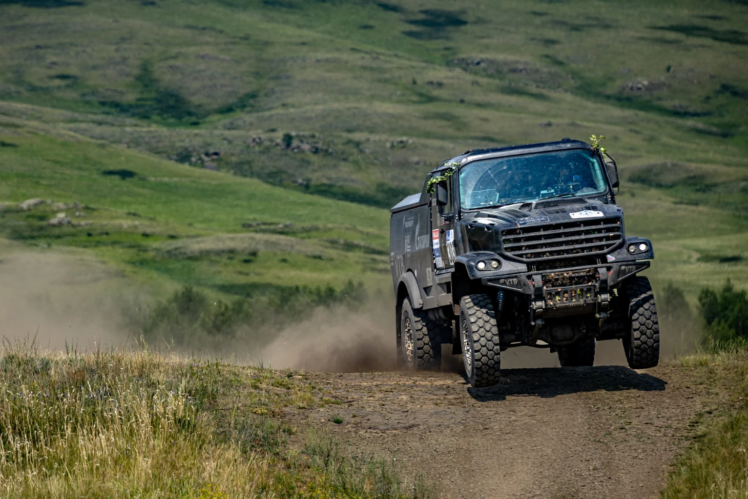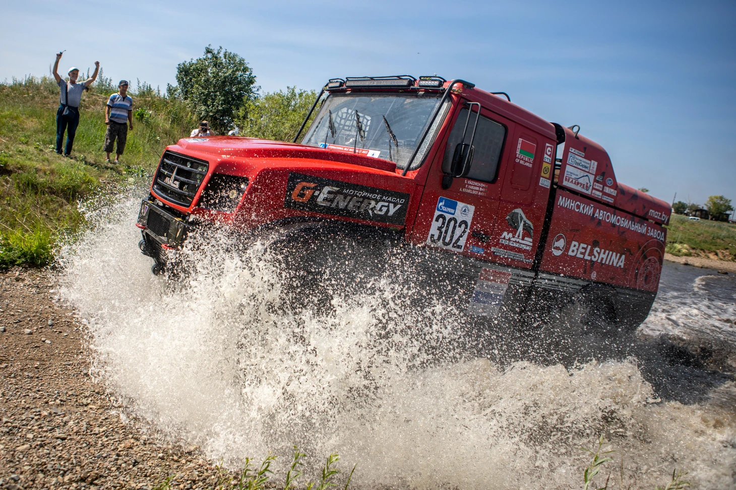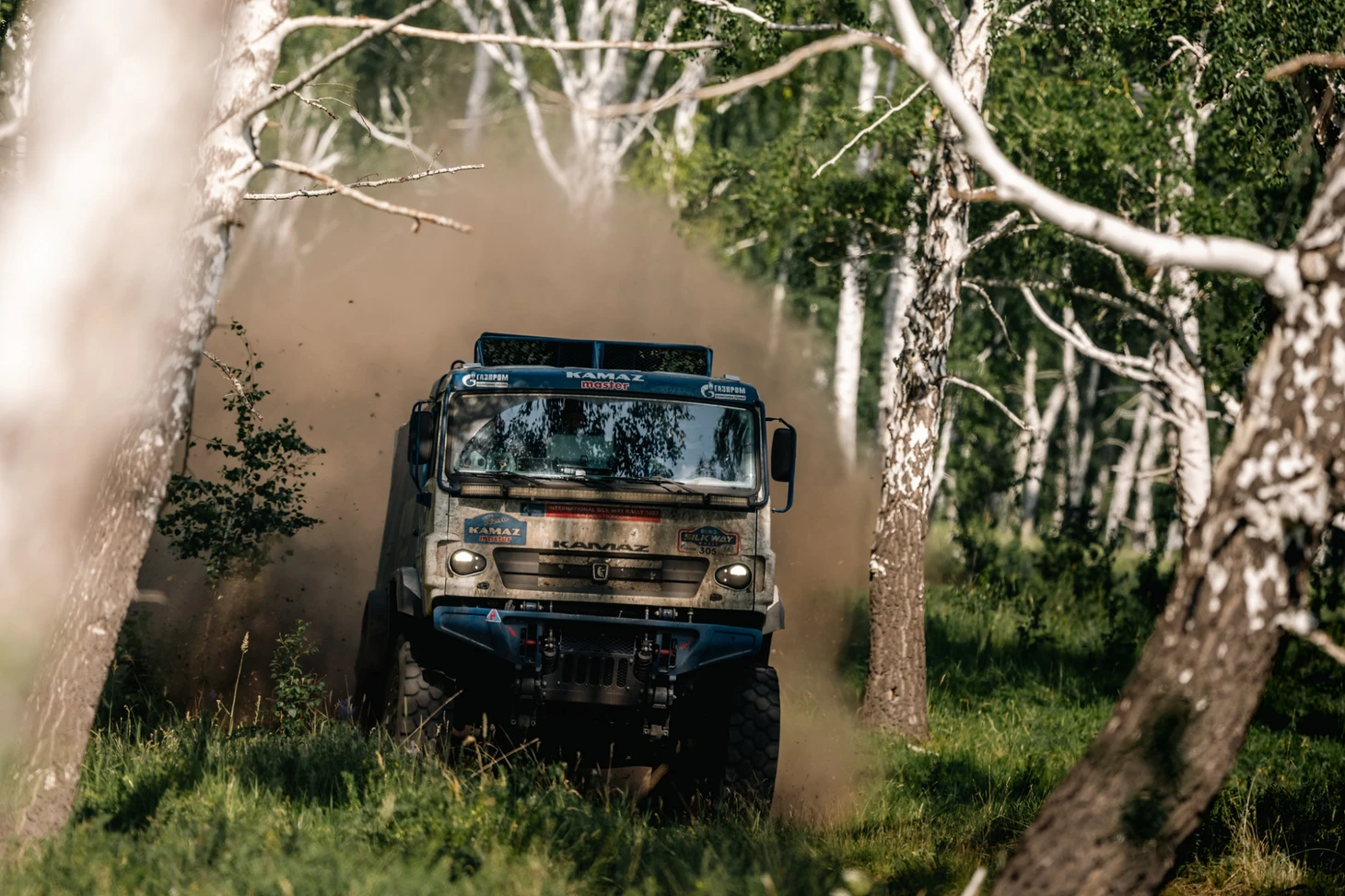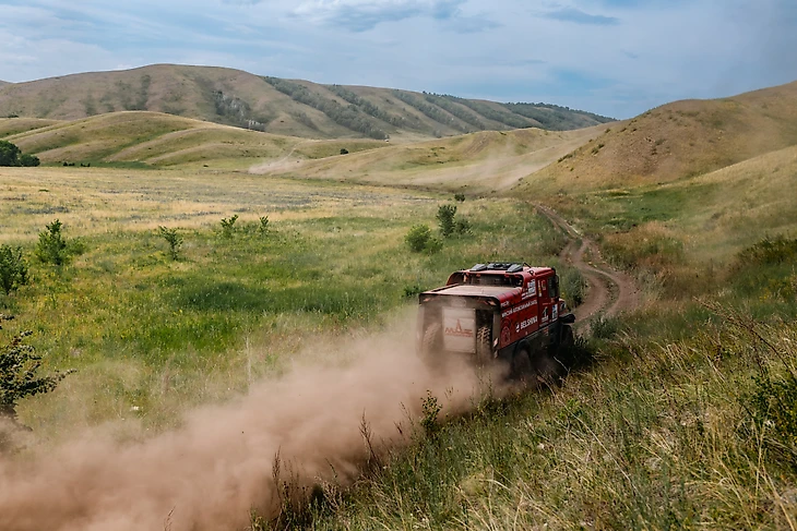 На биваке говорят, что южноуральский рельеф лучше подходит именно «МАЗам» за счет их капотной компоновки и, как следствие, лучшей маневренности. Поэтому юркие красные грузовики едут заметно быстрее на узких, извилистых тропах в лесах или по пересохшим руслам рек. Косвенно это подтверждает тот факт, что единственный «КАМАЗ», который висит на хвосте у Вязовича – тоже «капотный» прототип под управлением пятикратного победителя «Дакара» Эдуарда Николаева.