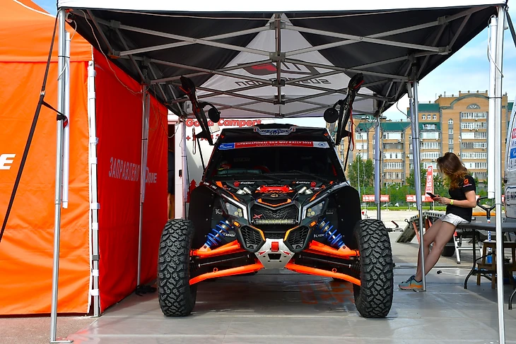 Прогуливаясь по стоянке, куда постепенно заезжают все новые и новые команды, можно встретить звезд мирового ралли в почти домашней обстановке. Например, Анастасия Нифонтова в ожидании медиа-ивента чиллит рядом со своим багги по прозвищу Крош, пока рядом ее сын гоняет радиоуправляемую машинку.