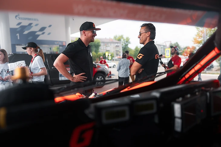 На перегоне в Башкирию гоночные машины, которых в этом году на «Шелковом пути» прибавилось почти во всех классах, и еще большее число автомобилей сопровождения группками останавливаются на импровизированной заправочной станции. Официальный поставщик ралли сеть АЗС «Газпромнефть» подгоняет свои бензовозы прямо на участок по ходу длиннейшего лиазона (дороги от финиша до бивака), обеспечивая все экипажи необходимым топливом. Сотрудничество компании с крупнейшим автоспортивным мероприятием в стране – не просто статусная история. «Шелковый путь» служит для нее испытательным полигоном перед тем, как предложить продукцию клиентам – обычным автомобилистам на любой из АЗС своей сети. Все верно: то же самое топливо, которым заправляется топовая раллийная техника, доступно любому водителю в стране.