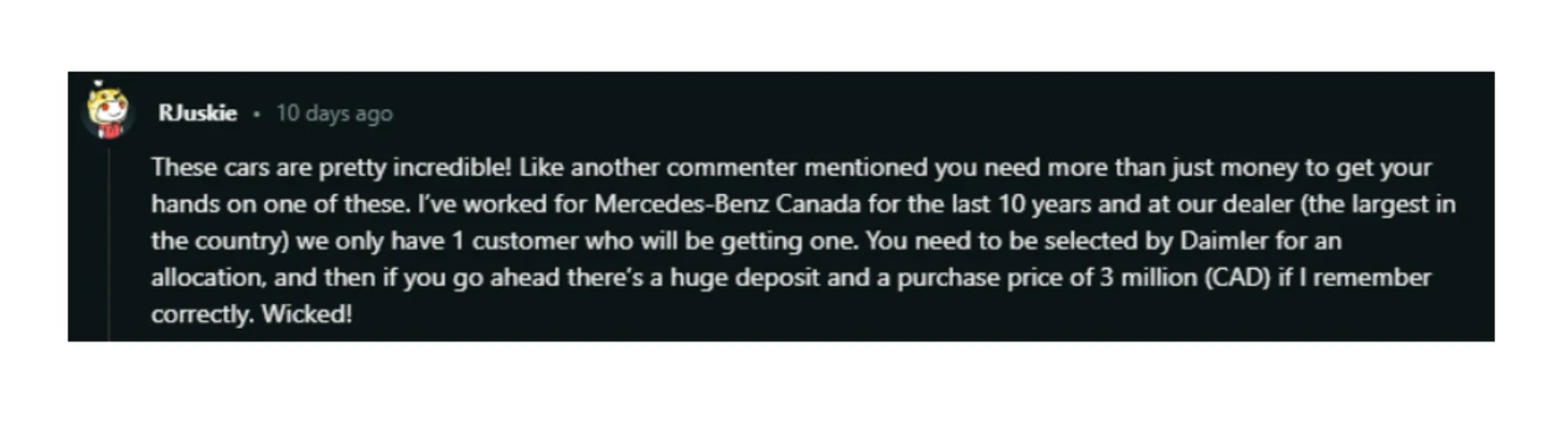 Это правда было непросто. Ведь возможность завладеть уникальным гиперкаром была не у всех. К тому же модель выпустили ограниченным тиражом всего в 275 машин. «Вам нужно больше, чем просто деньги, чтобы заполучить один из них – персональный допуск от концерна», – сообщает комментатор на «Реддите», работавший в канадском офисе «Мерседеса».