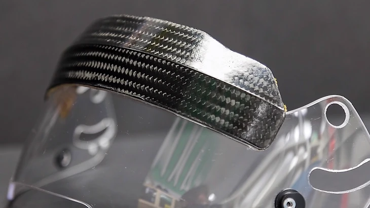 Верх визора дополнительно усилили полосой из зайлона – материала-конкурента кевлара и претендент на звание самого прочного синтетического волокна в мире .Его тоже используют для производства бронежилетов.