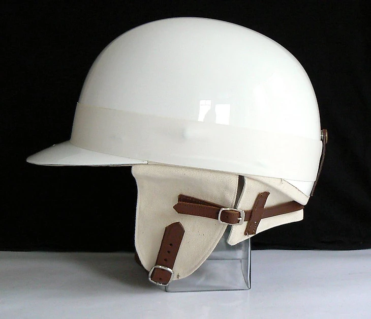 Английская Everoak стала первой компанией, запустившей массвое производство специально смоделированных гоночных шлемов. За основу взяли защиту игроков в поло, немного увеличили в размерах и добавили пробковую подкладку для поглощения ударов.