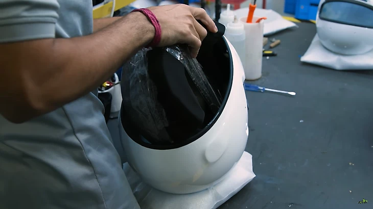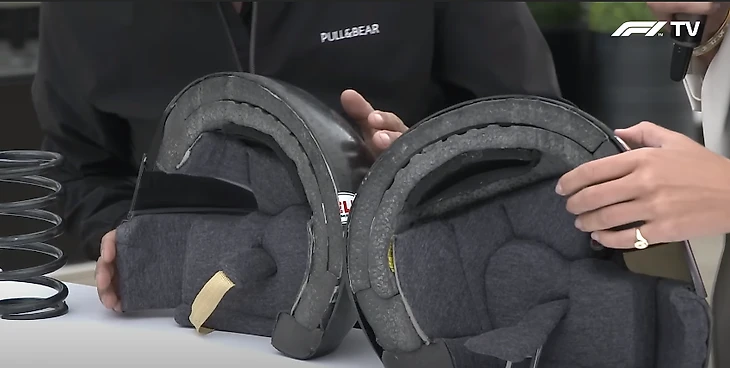Пеной и негорючим материалом оборачивают все внутренности шлема, чтобы сделать их комфортными для гонщиков. В некоторых деталях так же оставляют прорези для того, чтобы команда могла упаковать в защиту необходимую электронику.