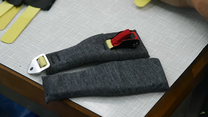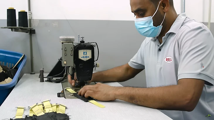 Наконец мы добрались до последнего отдела, он так и называется «финальная сборка». Его работники шьют ремешки из жаропрочного материала, а затем прячут их в слое пены, чтобы сделать комфортными для гонщиков.