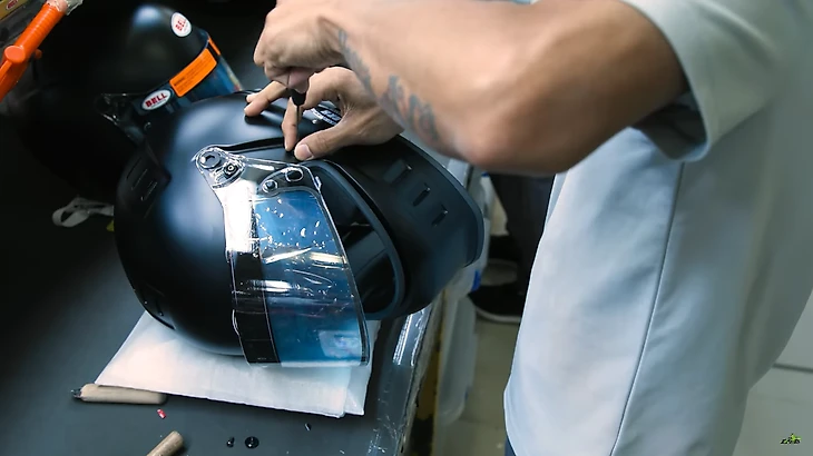 Последний этап – прикрутить визор. Это целая наука, ведь нужно убедиться, что пилоту будет удобно открывать и закрывать заслонку.