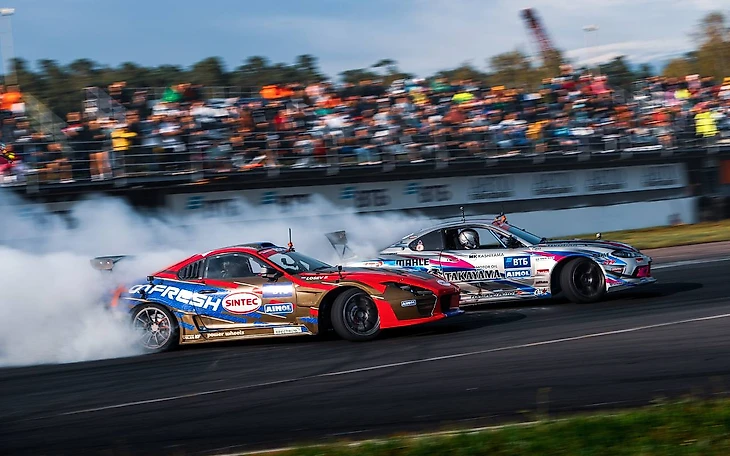 Удивительные и переворотные вещи начали происходить в воскресенье ещё до начала заездов топ-16. На утренних тренировках сразу несколько пилотов проследовали после постановки на газон «копать червей». Отличились больше всего двое. Максим Гроссман из TIMEUP, который подарил эффектные кадры своего вылета фотографам ещё в пятницу, второй раз подкинул механикам работу по замене заднего подрамника на своём автомобиле. Но меньше всех повезло Андрею Астапову из LUKOIL RACING DRIFT TEAM, он совершил переворот в самом прямом смысле этого слова, уложив свой Lexus на крышу. К счастью, пилот не пострадал, да и автомобиль «отделался лёгким испугом», и даже запланированный заезд переносить по времени не пришлось. Что примечательно, именно Астапов с Гроссманом составляли одну из пар топ-16. И в первом же своём хите синхронно проследовали на экскурсию за пределы трассы, но уже без таких фатальных последствий. Синхронно прекратили борьбу на стадии топ-16 два лидера сезона: Чарльз НГ и Антон Козлов. Чарли уступил Роме Тиводару, который на этом этапе совершил ренессанс и стал похож на себя образца прошлого сезона. Антону Козлову тоже не повезло попасть на воодушевлённого новым авто Григория Гусева, который на этом этапе, как и Тиводар, стал наконец-то напоминать себя прошлогоднего.