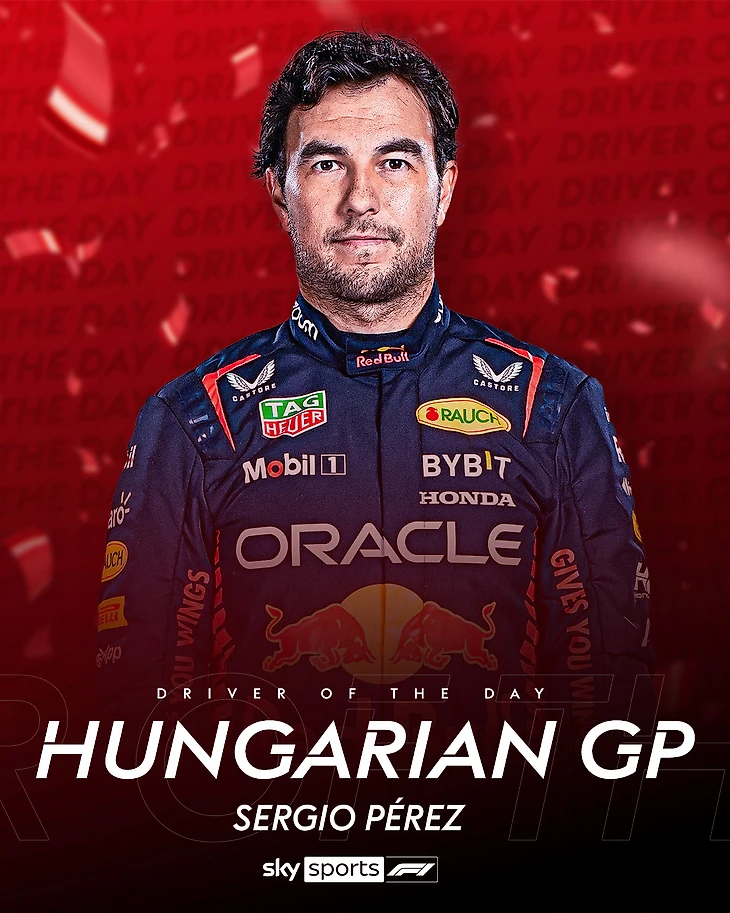 Награду «Пилот дня» по итогам «Гран-при Венгрии-2023» получил Серхио Перес. Мексиканец стартовал девятым, но в итоге прорвался на подиум.