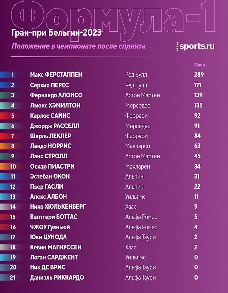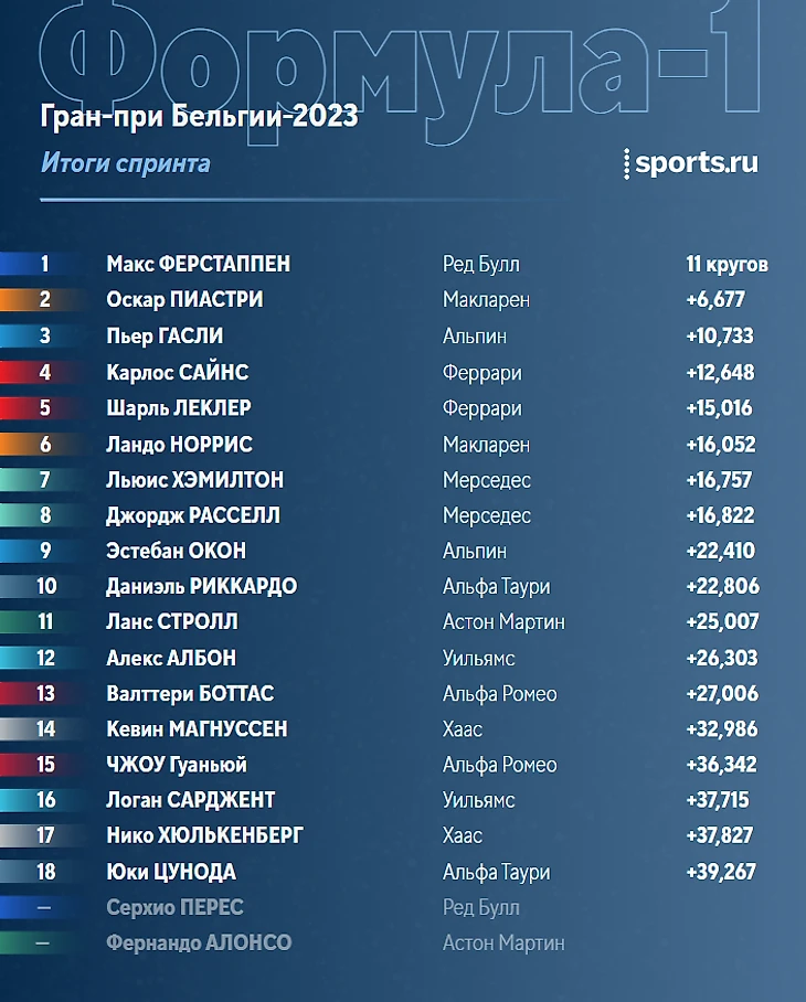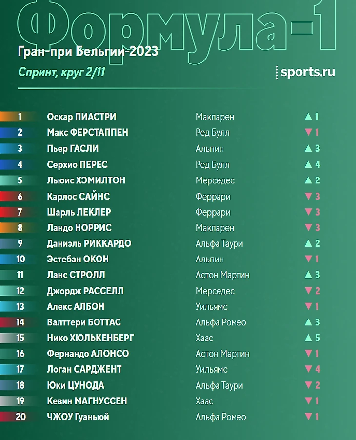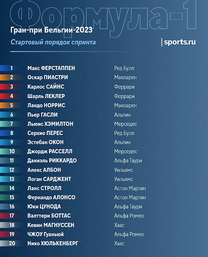 В 14:05 по московскому времени стартует спринт перед Гран-при Бельгии.