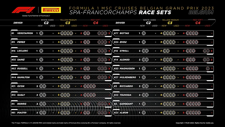 Появилась информация по шинам. Пиастри, Норрис, Расселл, Алонсо, Стролл, Цунода и Хюлькенберг на пит-лейн будут стартовать на «медиуме». У всех остальных «софт».