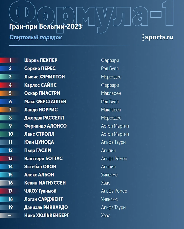 Участники вовсю готовятся к гонке. Основная интрига (или нет) – как быстро Макс Ферстаппен сможет прорваться вперед и выйти в лидеры гонки. После штрафа за замену коробки передач Макс сегодня стартует шестым. Однако вряд ли это его как-то волнует, учитывая то, что прошлогодний Гран-при Бельгии Ферстаппен выиграл после старта с 14-й позиции.