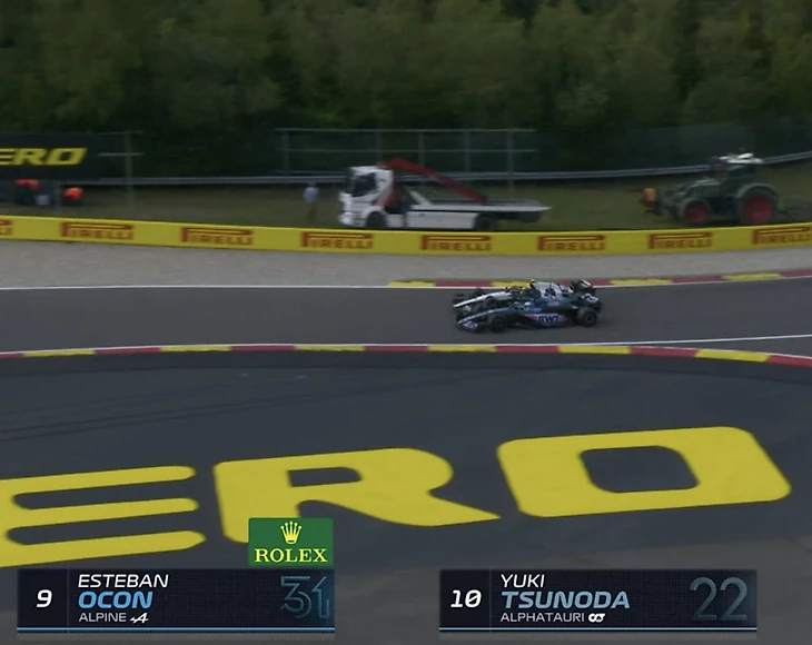Тем временем, до финиша чуть больше трех кругов. Борьба идет только в конце топ-10. Так, Окон организовал себе еще плюс одну позицию, обогнав Ланса Стролла. А вот Гасли Цуноду догнать не может.