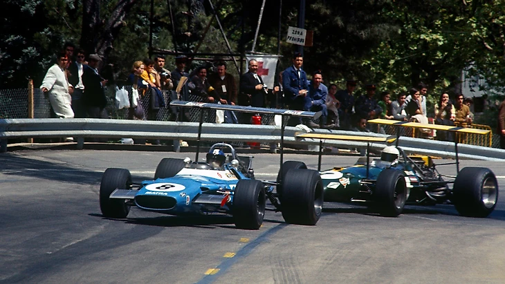 Задние антикрылья (а впоследствии и передние): Мауро Форгьери из «Феррари» в 1968-м