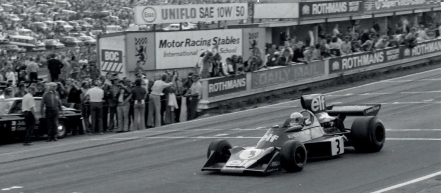 Лауда уже освоился в Ferrari, он выиграл две гонки, в Испании и Нидерландах. В Брэндс-Хэтч он взял поул, и довольно уверенно лидировал в гонке. Оставалось 20 кругов, когда австриец почувствовал проблемы с управляемостью. Также это заметил и Джеки Стюарт. Трехкратный чемпион мира только недавно закончил карьеру, и он еще помнил многие часы, проведенные на шинных тестах Goodyear. Шотландец, комментируя гонку для BBC, заметил повреждение профиля правой задней шины у Лауды и предположил, что Ники придется заезжать и менять ее. Когда Лауда сам осознал причину, он прикинул, что замена займет около 15 секунд. Большинство поворотов на трассе правые, так что он решил продолжать, так как ситуация была контролируемая. Джоди Шектер быстро сократил восьмисекундное отставание от Лауды, а вот еще двое преследователей были больше чем в полуминуте. Все остальные были в круге позади, а всего в гонке было 11 сходов (а мы еще жалуемся на скучные гонки в наши дни).