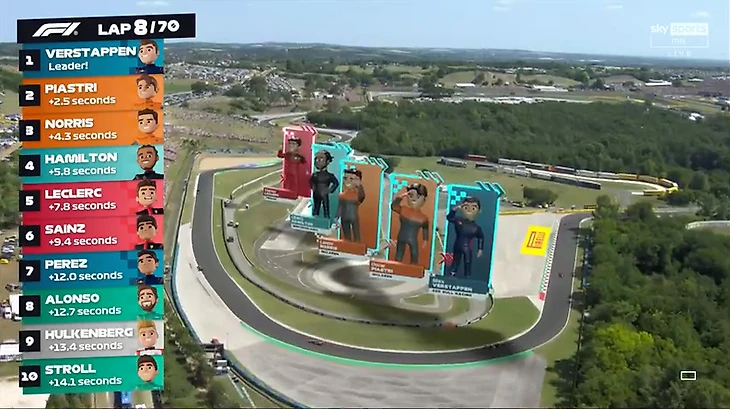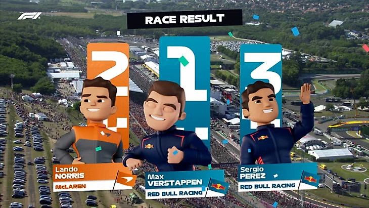 Трансляция получилась довольно красочной. К примеру, пока мини-журналисты обсуждали прогнозы на гонку, стартовую решетку показывали со специально нарисованной графикой – каждому пилоту придумали мультяшный аватар:
