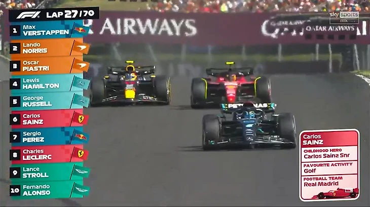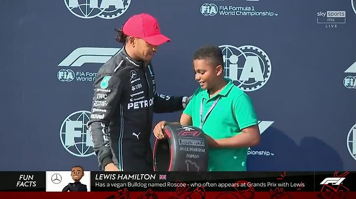 Вообще любая информация о пилотах называлась «забавной». В случае Льюиса Хэмилтона это были «обладатель поула», «семикратный чемпион» и «у него есть собака-веган Роско»: