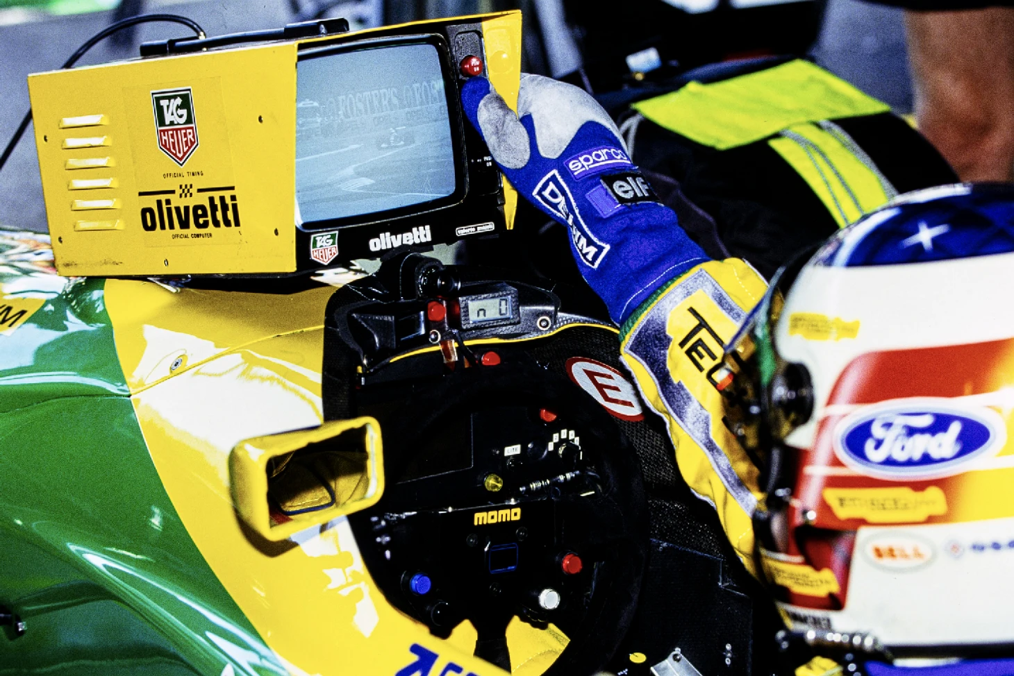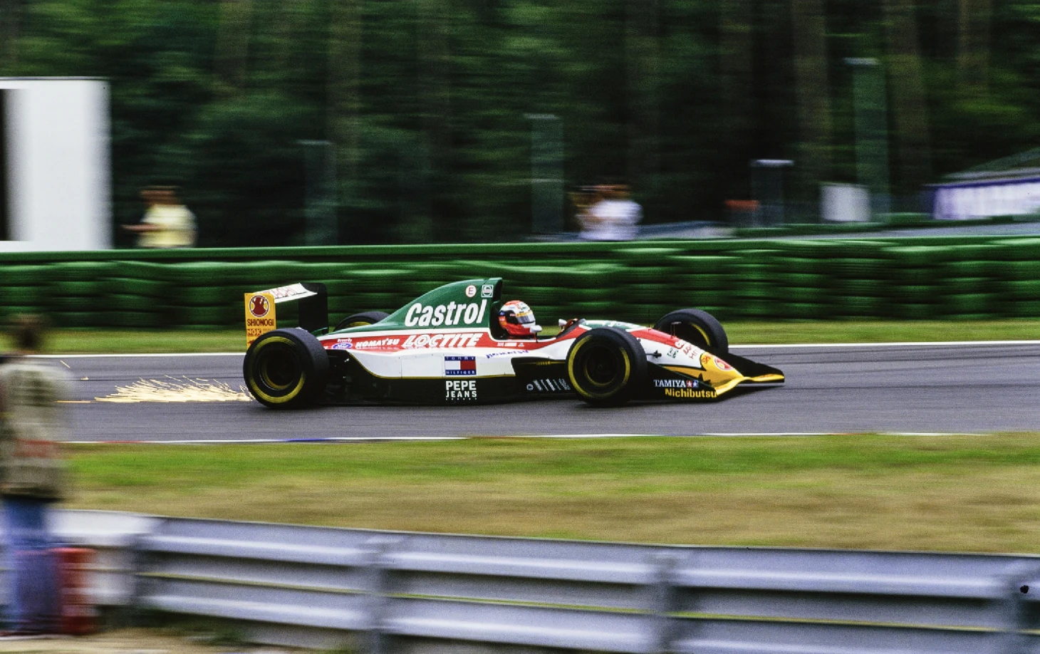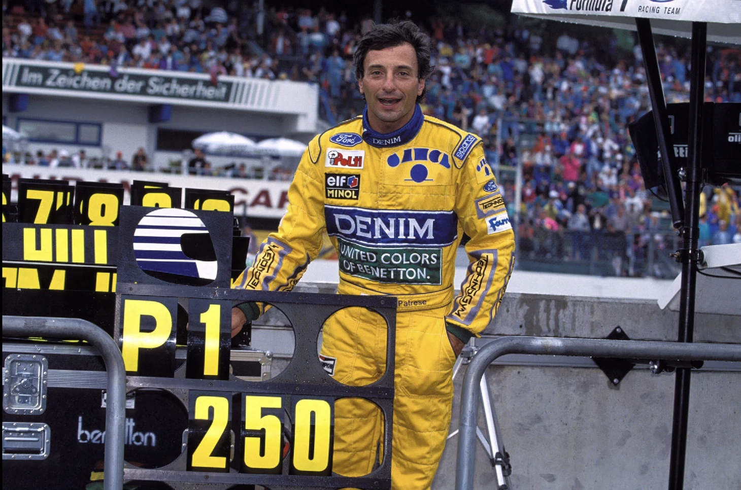 Но что еще есть в Хоккенхайме, так это неровности. По всему автодрому много мелких ямок, что в поворотах уже становится угрозой. Наблюдать за прохождением этих поворотов болидами тех лет – это наблюдать за зверем, испытывающим сильные муки. Например, «Тиррелл» вообще вилял и кренился в разные стороны. Как и многие другие, они поднимали оба передних колеса в коротком рывке между жестким правым поворотом перед второй шиканой и левым быстрым поворотом в середине нее. От этих симптомов, вероятно, никто не был застрахован, но «Бенеттон», похоже, справлялся с этим лучше всех.