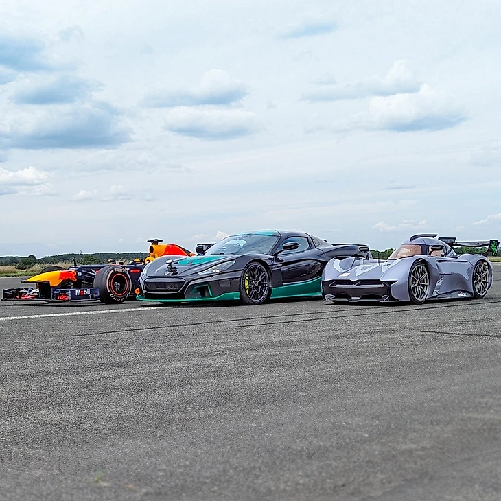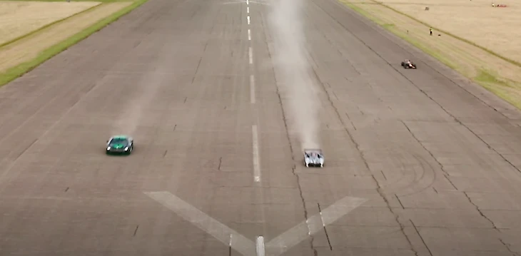 Кто быстрее – болид «Ф-1», электрокар на 1914 л.с. или рекордный гиперкар на 1000 л.с. с вентилятором под днищем? Есть ответ!