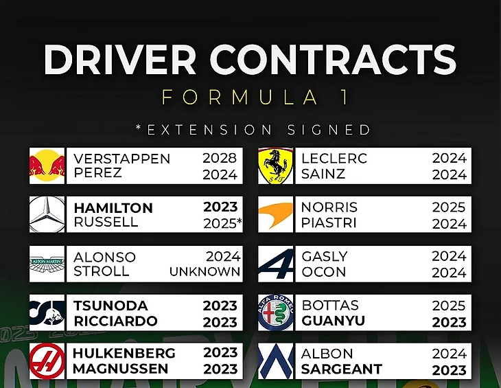 Примечание: официально о продлении Шарля Леклера с «Феррари» пока не объявлено. Тем временем Джордж Расселл продлился с «Мерседесом» до 2025-го.