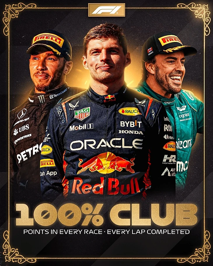 Во-вторых, Формула-1 представил «Клуб 100». Только Льюис Хэмилтон, Фернандо Алонсо и Макс Ферстаппен завершили все 12 гонок сезона-2023 и сделали это в очковой зоне.