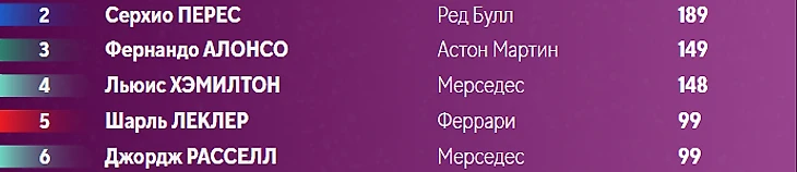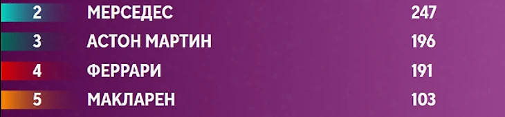 Второе место обоих зачетов: Перес против Алонсо и Хэмилтона, а «Мерседес» – против «Феррари» и «Астон Мартин»