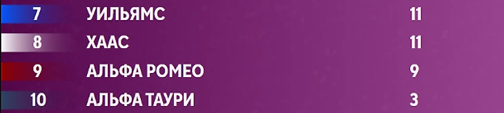 Еще одна схватка с гандикапом в 1-2 балла развернулась с седьмого по десятое места Кубка конструкторов – вот где точно даже одна гонка может все безвозвратно поменять: