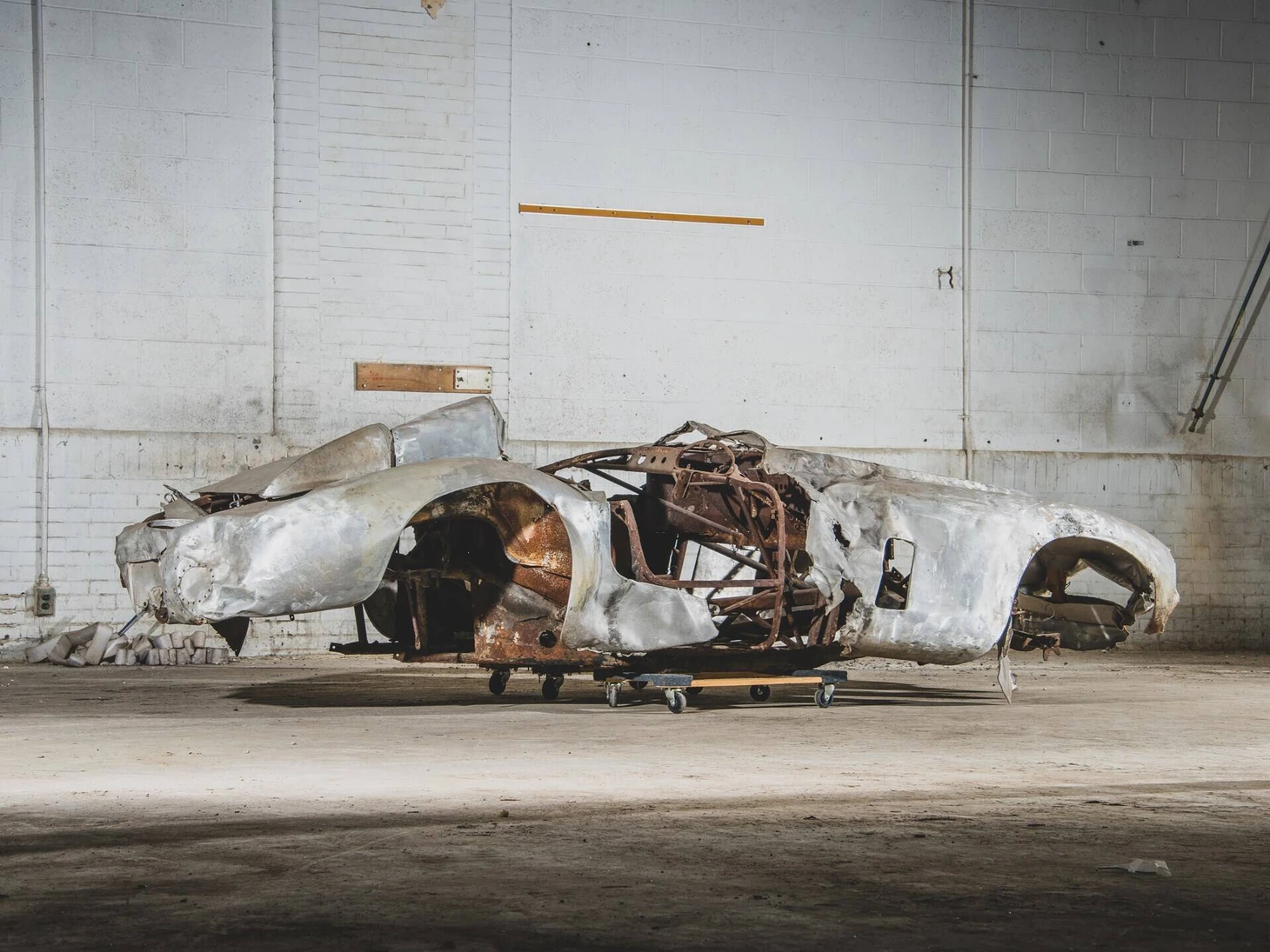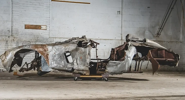 Тем не менее, «Феррари» 50-х настолько редкие, что даже такие выгоревшие остатки все равно успешно выходят на аукцион! Остов 500 Mondial ушел с молотка на аукционе RM Sotheby’s за $1,875 млн – ведь все верифицирующие документы, плашки и пломбы Скудерии об оригинальности на месте.