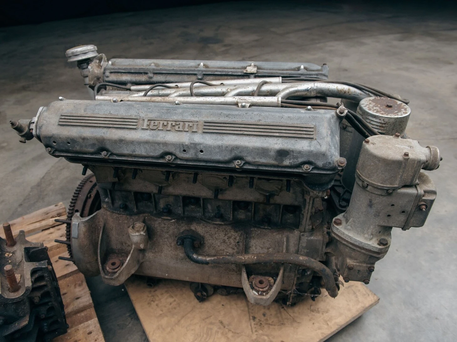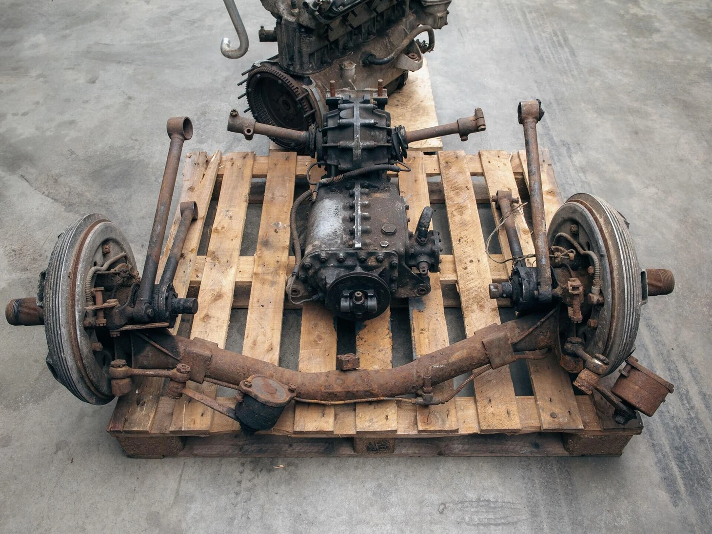 С тех пор его и не восстанавливают – поскольку реставрация точно завесит на несколько десятков миллионов. Весь «комплект» – на фото: остатки шасси, полуразвалившаяся коробка передач и детали более позднего мотора Tipo 199.