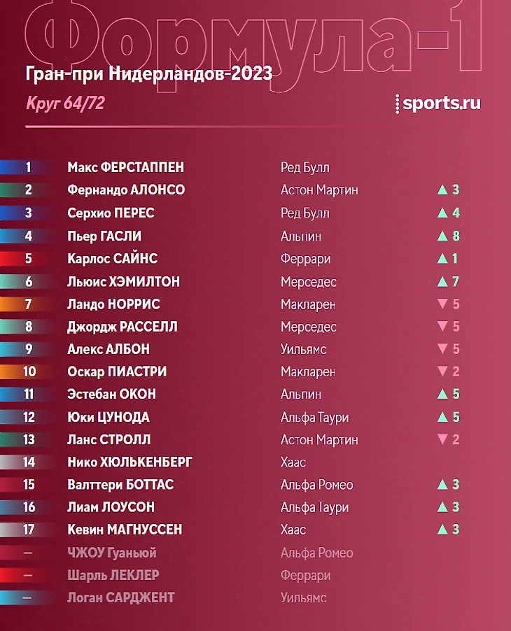– На 60-м круге Гасли все-таки обогнал Сайнса и поднялся на 4-е.