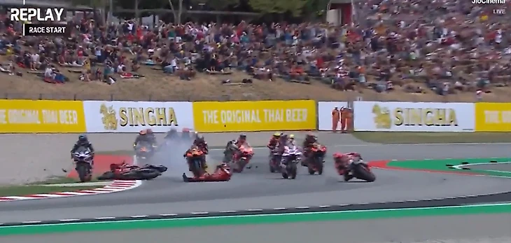 Гран-при Каталонии в MotoGP можно называть абсолютно чудесным – в произошедшее там на первом круге трудно поверить.