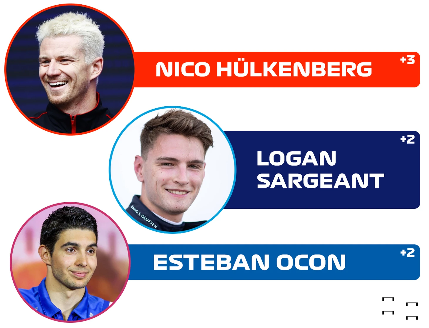 За счет отсутствия на решетке машины Юки Цуноды перед Нико Хюлькенбергом открылся оперативный простор, и немец сполна этим воспользовался, прорвавшись к концу первого круга на 3 позиции и обойдя самого Фернандо Алонсо. Не отстал и располагавшийся за пилотом «Хаас» Логан Сарджент - плюс 2 позиции. Также 2 позиции отыграл Эстебан Окон.