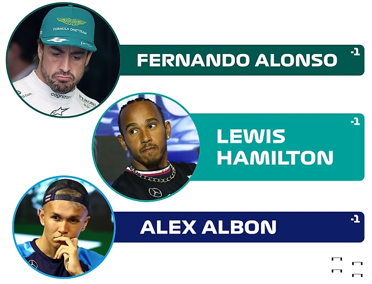 Всего трое гонщиков потеряли позиции на старте Гран-при, в их числе Фернандо Алонсо, Льюис Хэмилтон и Алекс Албон.
