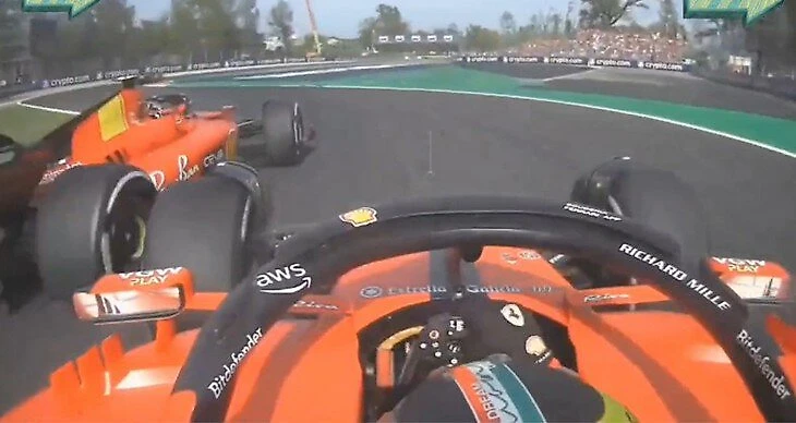 В Италии изменилась только очередность пилотов – теперь Сайнс оказался впереди. И что же мы увидели? Леклер боролся с ним дольше по времени, чем с Пересом.