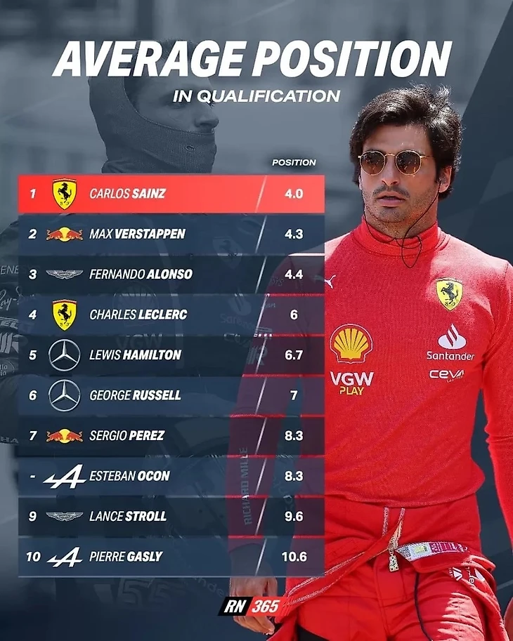 Просто Карлос действительно удивляет незаметной, но потрясающей стабильной – вот статистика по лучшей средней квалификационной позиции до Гран-при Канады:
