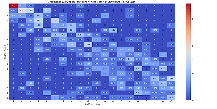 Корреляция позиций в квалификации и в гонке в 2023 году
