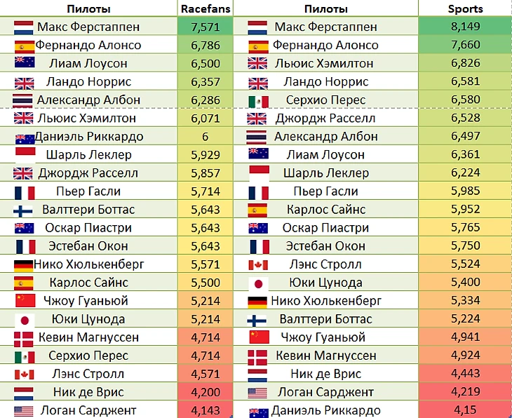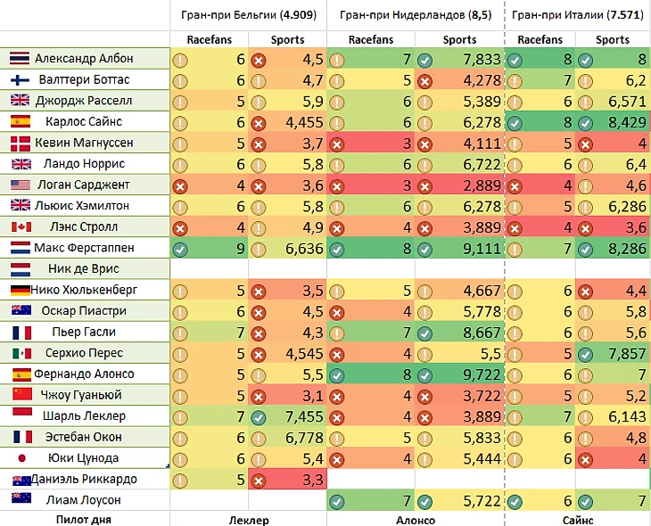 Оценки по результатам Гран-при Италии (7.571 балла):