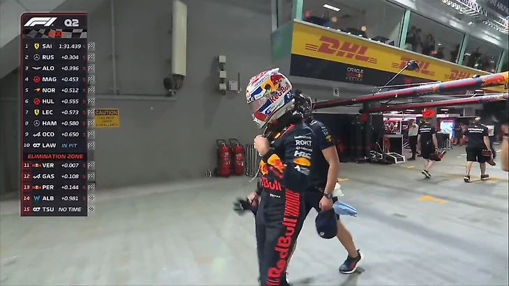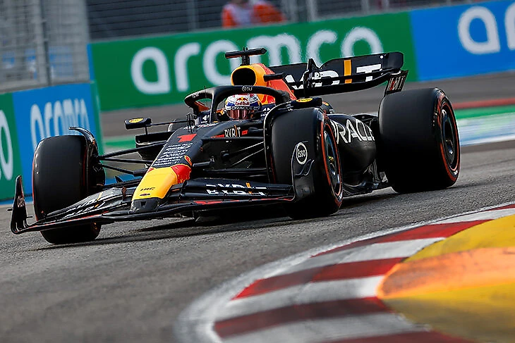 Еще одной попыткой спасти уик-энд стало агрессивное снижение дорожного просвета – но не помогло. Цель заключалась в перераспределении баланса и ускорении – ведь после трудных практик «Ред Булл» все-таки хотел побороться за поул – но ухабистый уличный трек Сингапура полон кочек. Выпавшая из комфортного рабочего окна подвеска не смогла их «переваривать», и пилоты постоянно бились днищем об асфальт в непредсказуемых местах, теряя прижимную силу (она генерируется под днищем) и возможность управлять RB19 как следует.