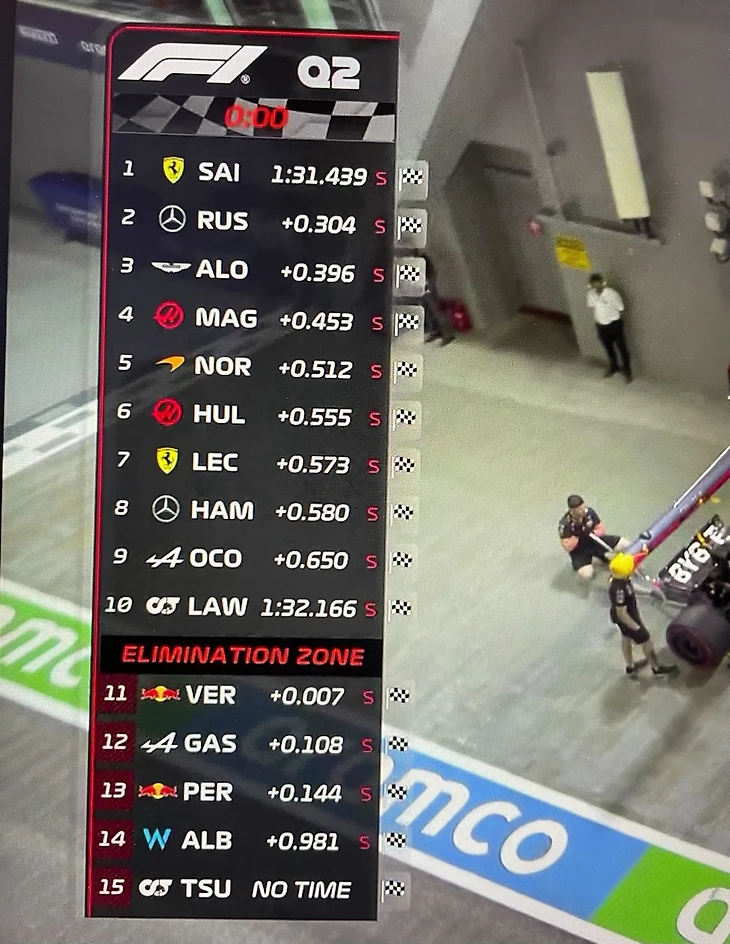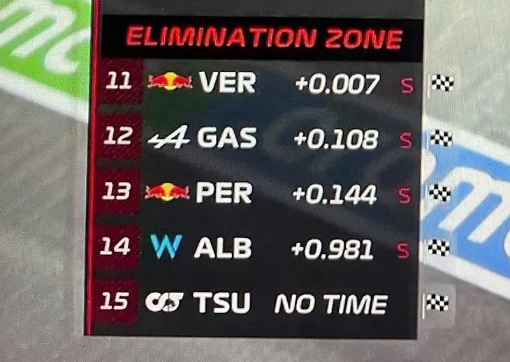 Оба болида Ред Булл выбыли по итогам второго сегмента квалификации. Давайте просто запечатлеем этот исторический момент.