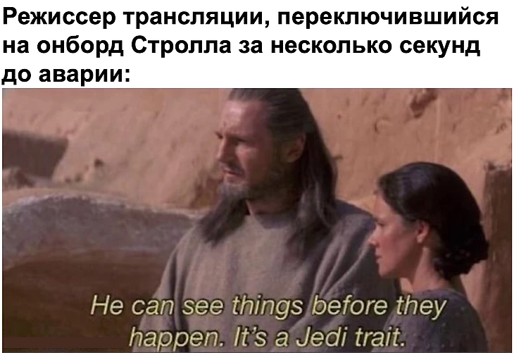 Авария Стролла на последних секундах первого сегмента. Спасибо за инсайд, AWS, действительно очень близко к стене! Примерно в -30 см.