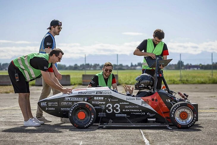 А теперь за рекордом пришли юные конструкторы из швейцарской команды AMZ Racing – объединение лучших выпускников Швейцарской высшей технической школы Цюриха и Университета искусств и прикладных наук Люцерна. Они выступают в студенческом чемпионате «Формула Студент» – его цель заключается в разработке гоночного болида по регламенту от судей, его сборке, защите перед потенциальными спонсорами и жюри (от команд даже требуют бизнес-план!) и затем трековые испытания.