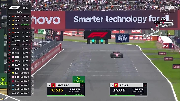Леклер проиграл Ферстаппену 0,492 секунды, а Сайнс – и вовсе 1,192.