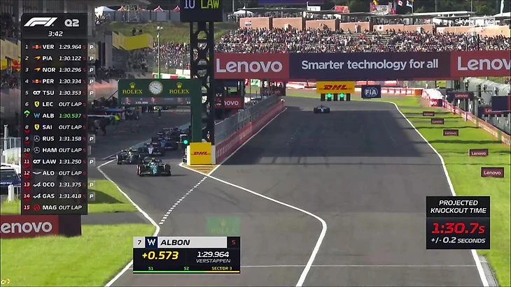Лоусон был 4-м в первом сегменте, а в первой попытке в Q2 пока 9-й, Цунода и вовсе сейчас 4-й.