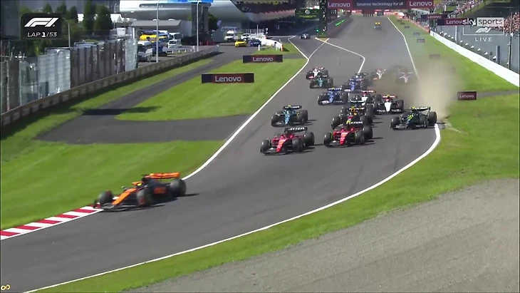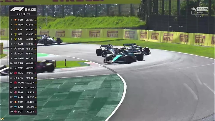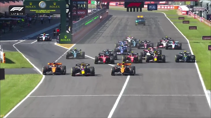 Ферстаппен очень жестко оттер Пиастри, и этим чуть не воспользовался Норрис, однако Макс сумел отразить атаку и второго «Макларена».
