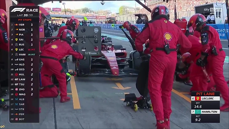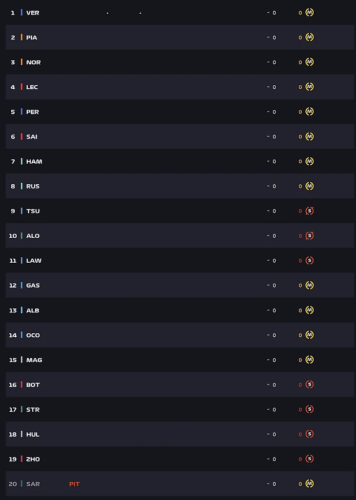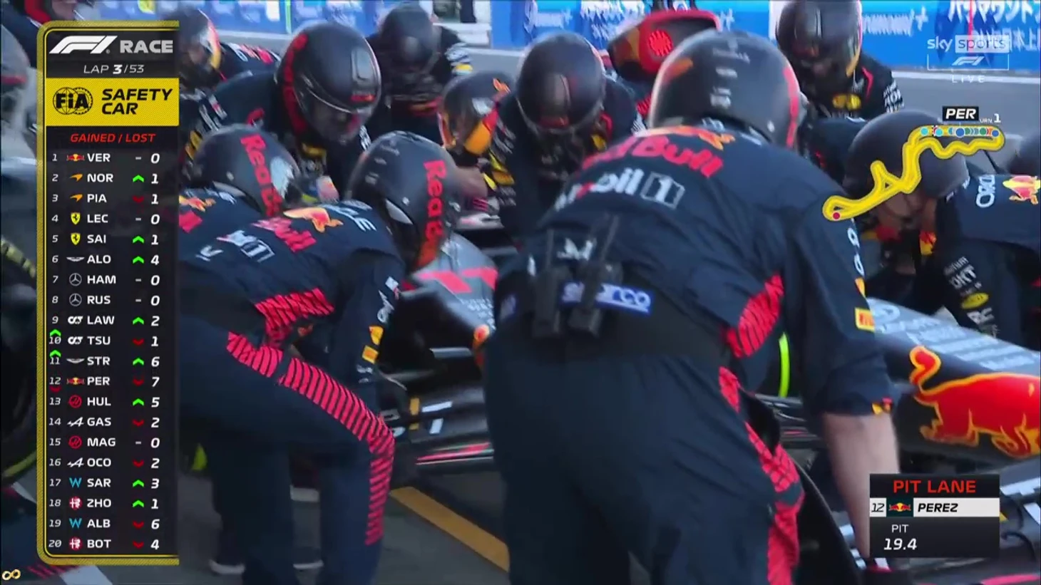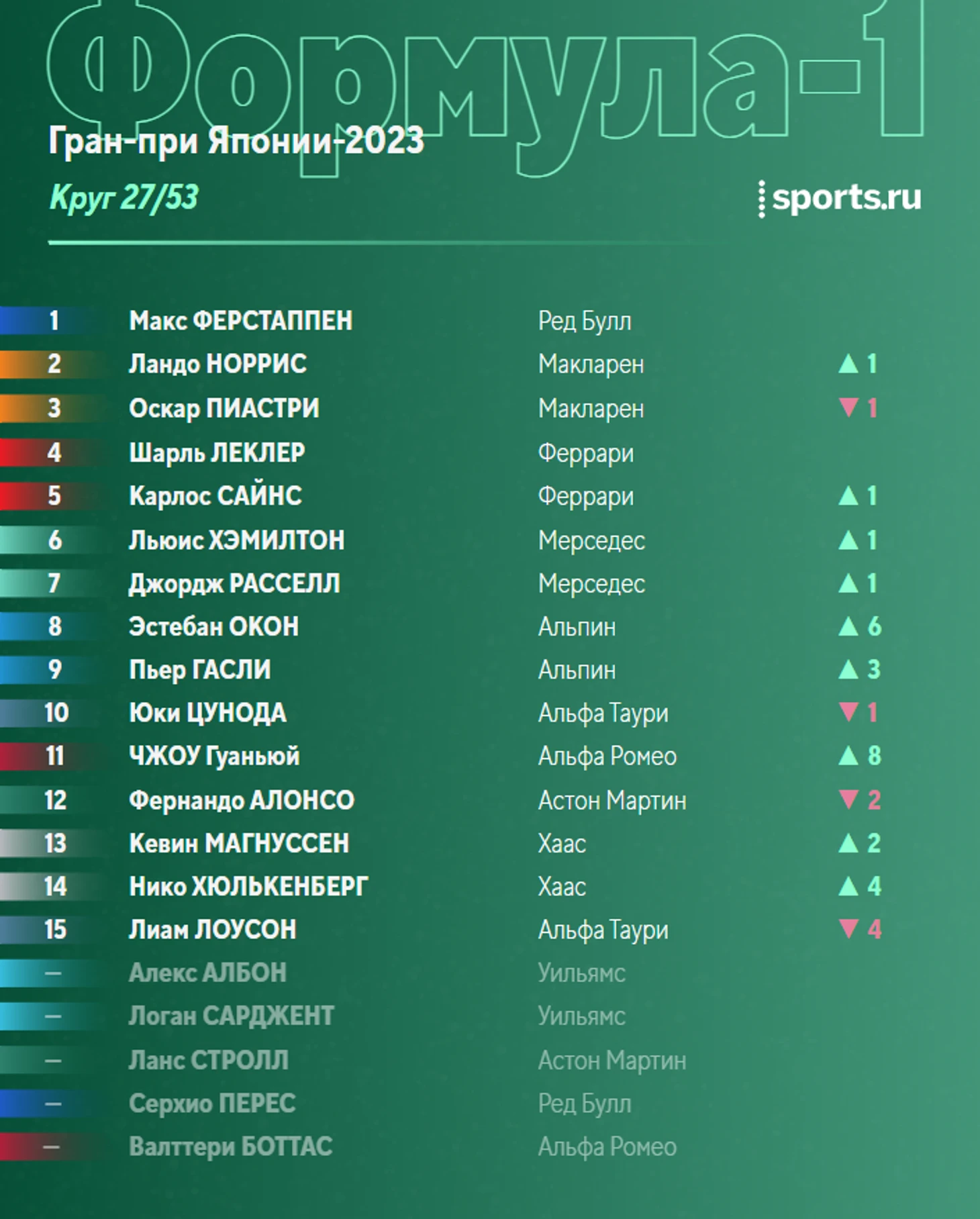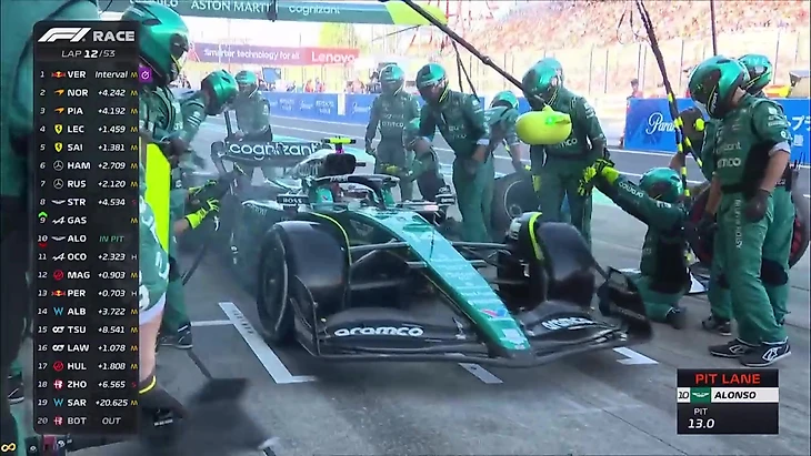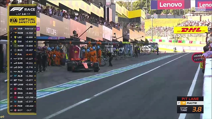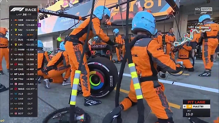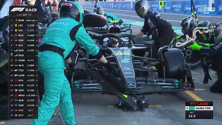 Успел сменить шины и Албон, а вот лидеры (кроме Пиастри) - так и не побывали на пит-лейн.