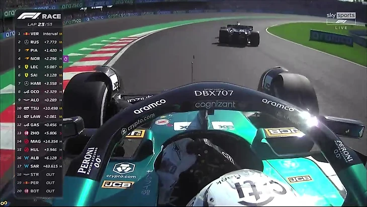 Теперь гонщика «Астон Мартин» опередил Хэмилтон. Льюис также разобрался с бедолагой Оконом буквально через несколько поворотов. Вот так тонут бывшие партнеры.