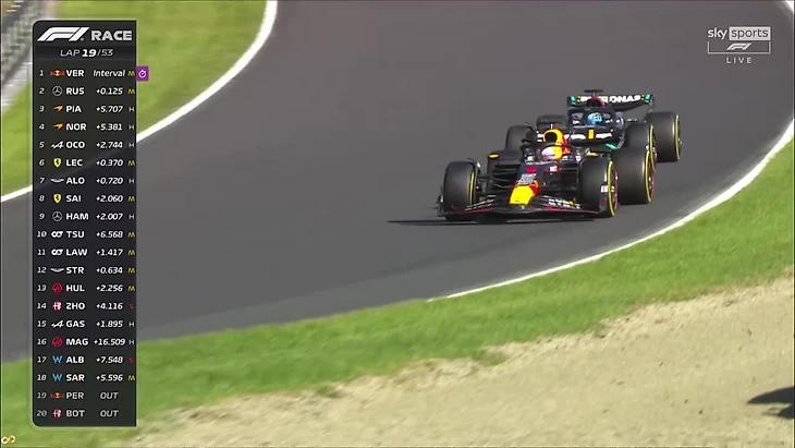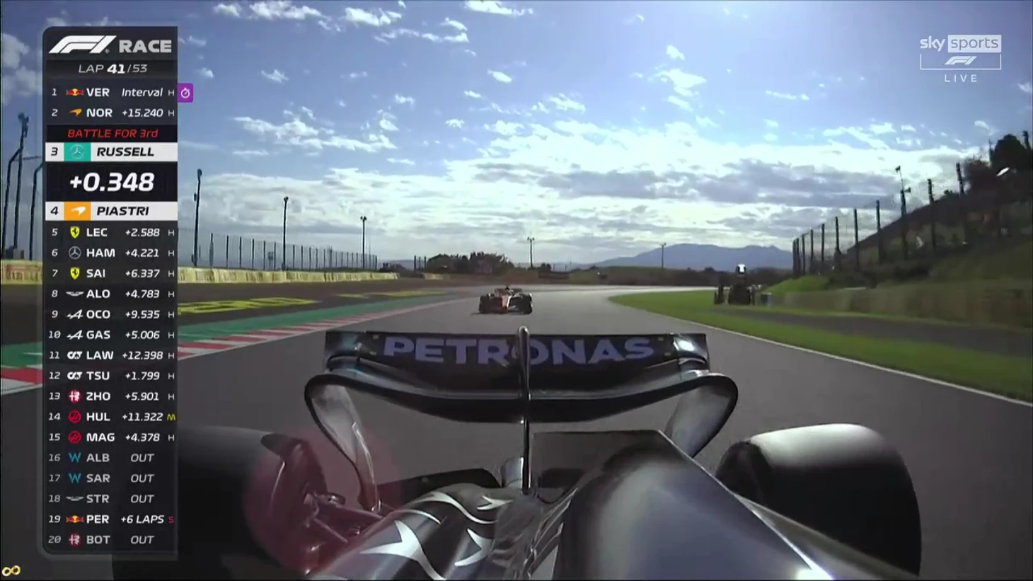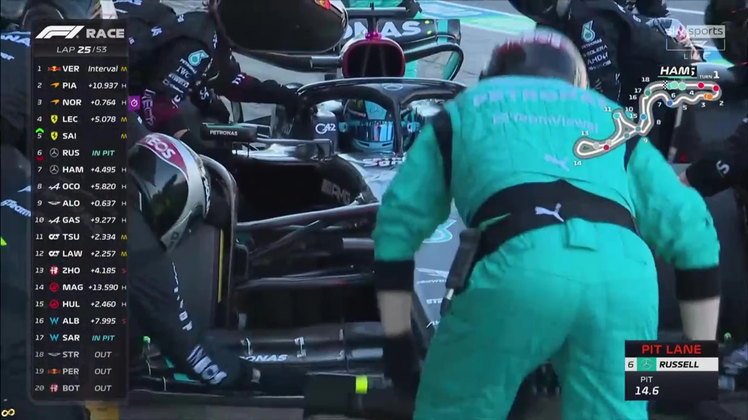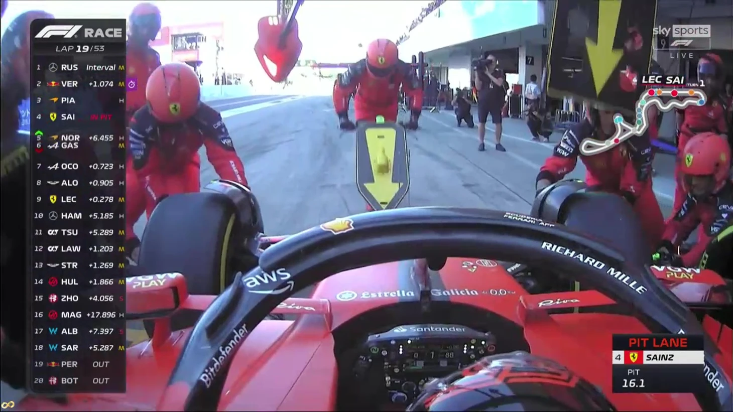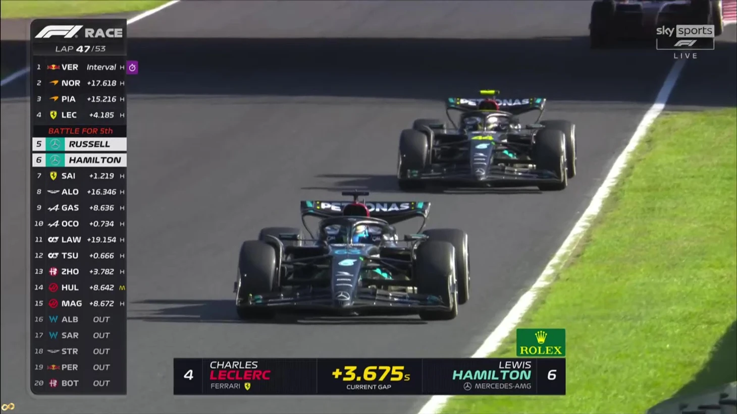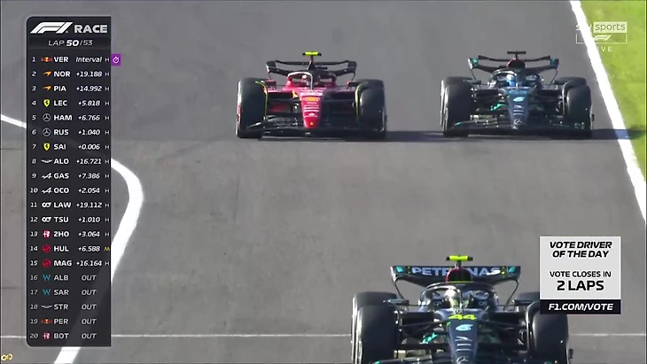 На 50-м круге «Мерседес» разменял своих пилотов, после чего Джорджа обогнал Сайнс!