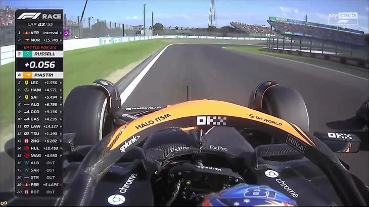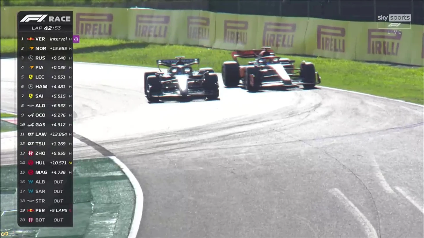 Ландо теперь 4-й, позади Расселла, но шины у пилота «Мерседеса» уже прожили слишком долго, он будет легкой добычей.