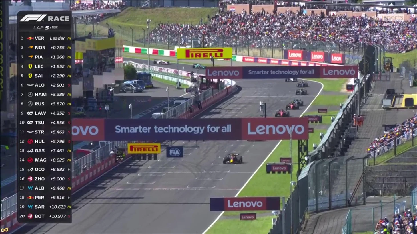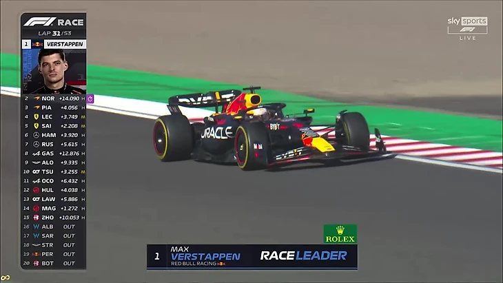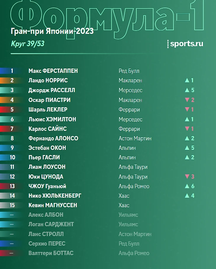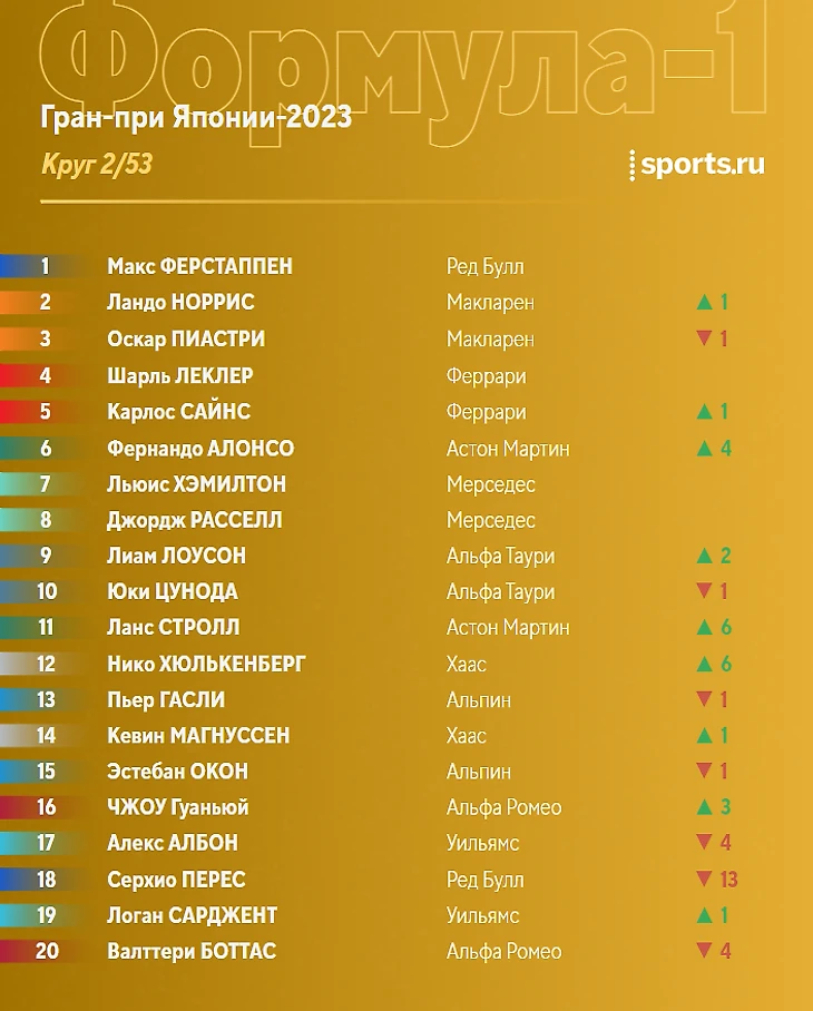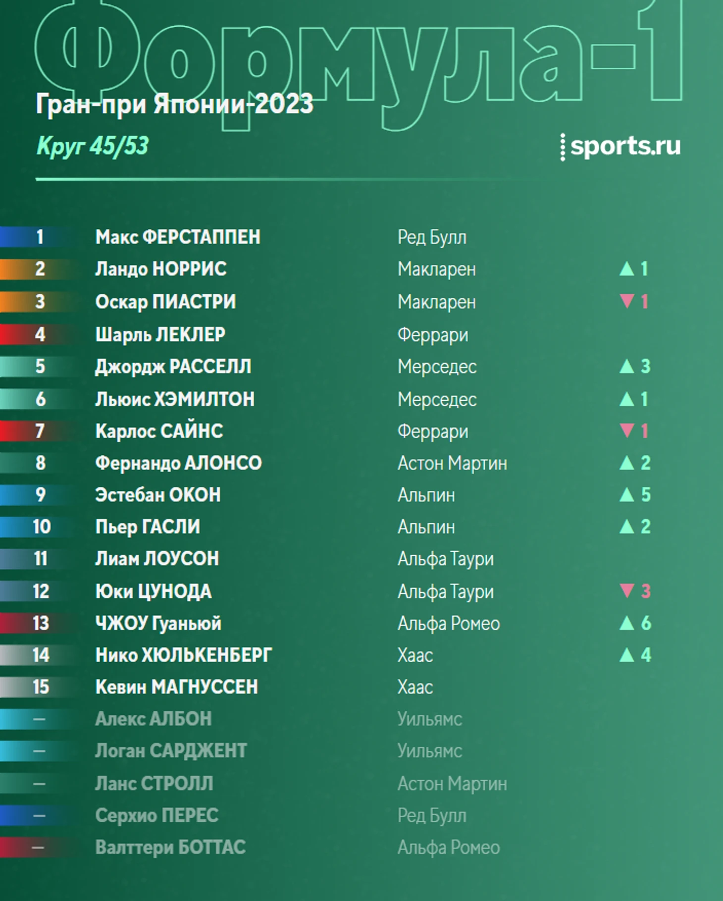 Ферстаппен легко удержал лидерство, изменений в группе лидеров нет.