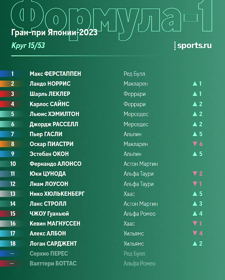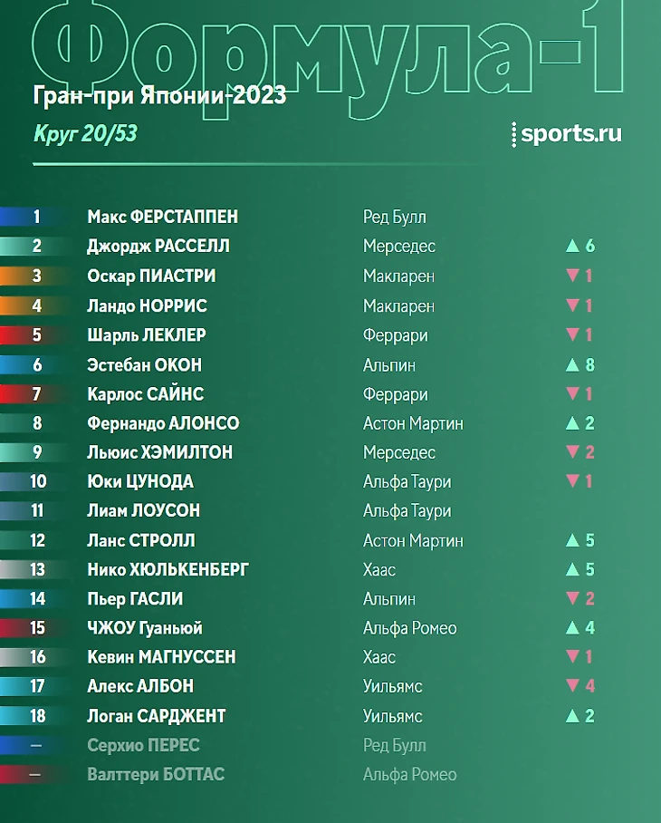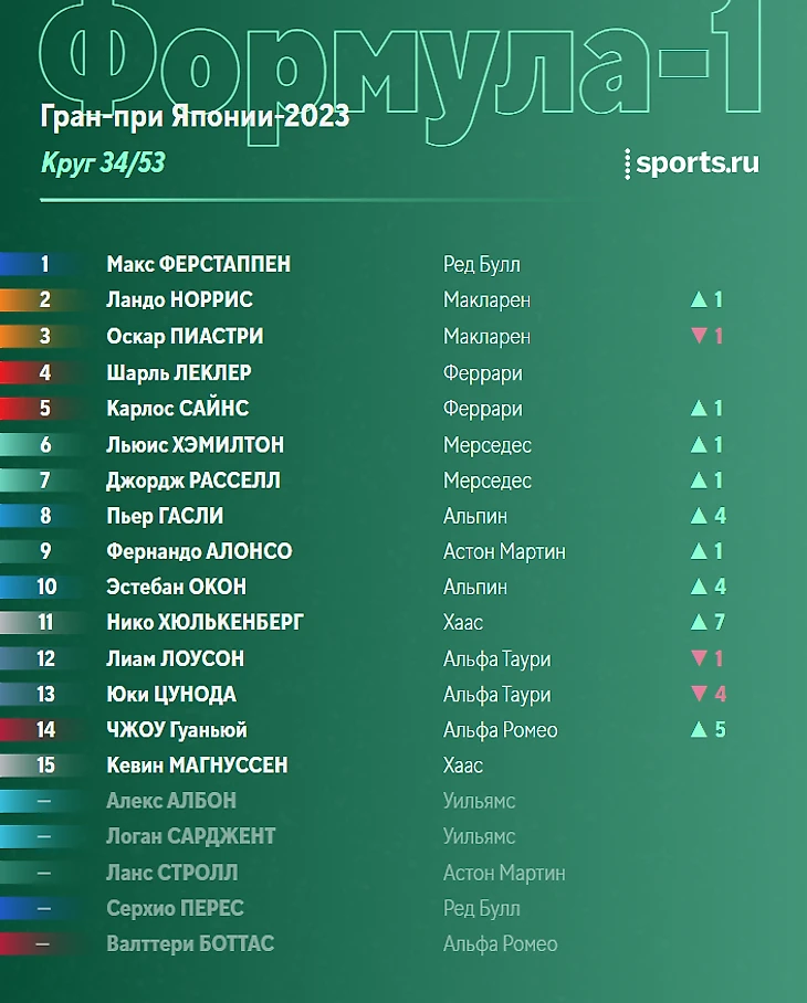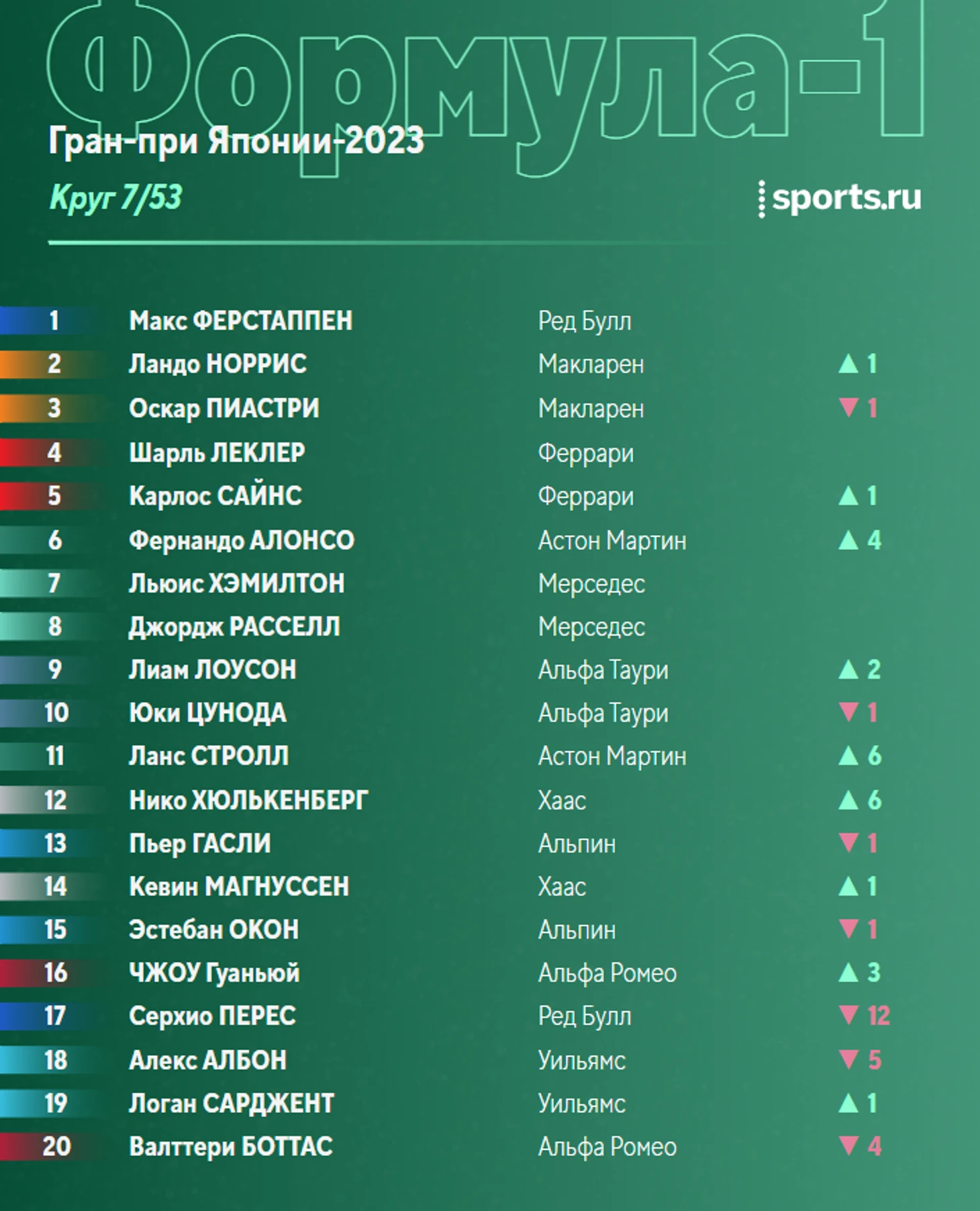 Он возвращается 7-м, на 3 позиции ниже Пиастри!